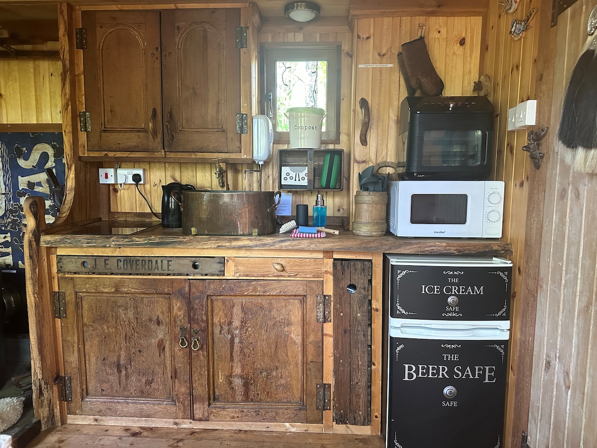 Carromato único construido por Highland Company, Dingwall. La ubicación tiene vistas a las montañas y valles en una posición tranquila, pero no lejos de la ruta principal de este a oeste de Escocia. El precio es para 2 personas. Cualidades como la calefacción por suelo radiante, el baño con ducha y las instalaciones de cocina hacen de esta una experiencia glamping de lujo. Explora los paseos locales, los lagos y las reservas naturales o las ciudades locales con mercados y restaurantes de temporada. Aviemore, Fort William, Pitlochry a 30-40 minutos o transporte local.
