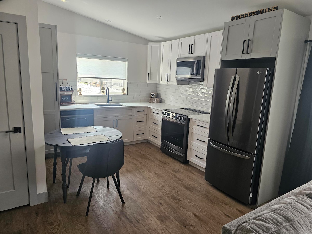 Despierte en una suite de garaje luminosa y moderna de 2 dormitorios, situada sobre un tranquilo callejón en el sureste de Calgary. Construido en 2023, este refugio en el segundo piso combina un diseño sobrio con comodidades cotidianas: una cocina compacta totalmente equipada, un baño completo con bañera/ducha y lavandería en la suite. Dos habitaciones con camas queen pueden alojar cómodamente hasta 4 huéspedes. Ideal para viajes de trabajo, parejas o familias pequeñas que deseen explorar Inglewood, Ramsay y los senderos junto al río.