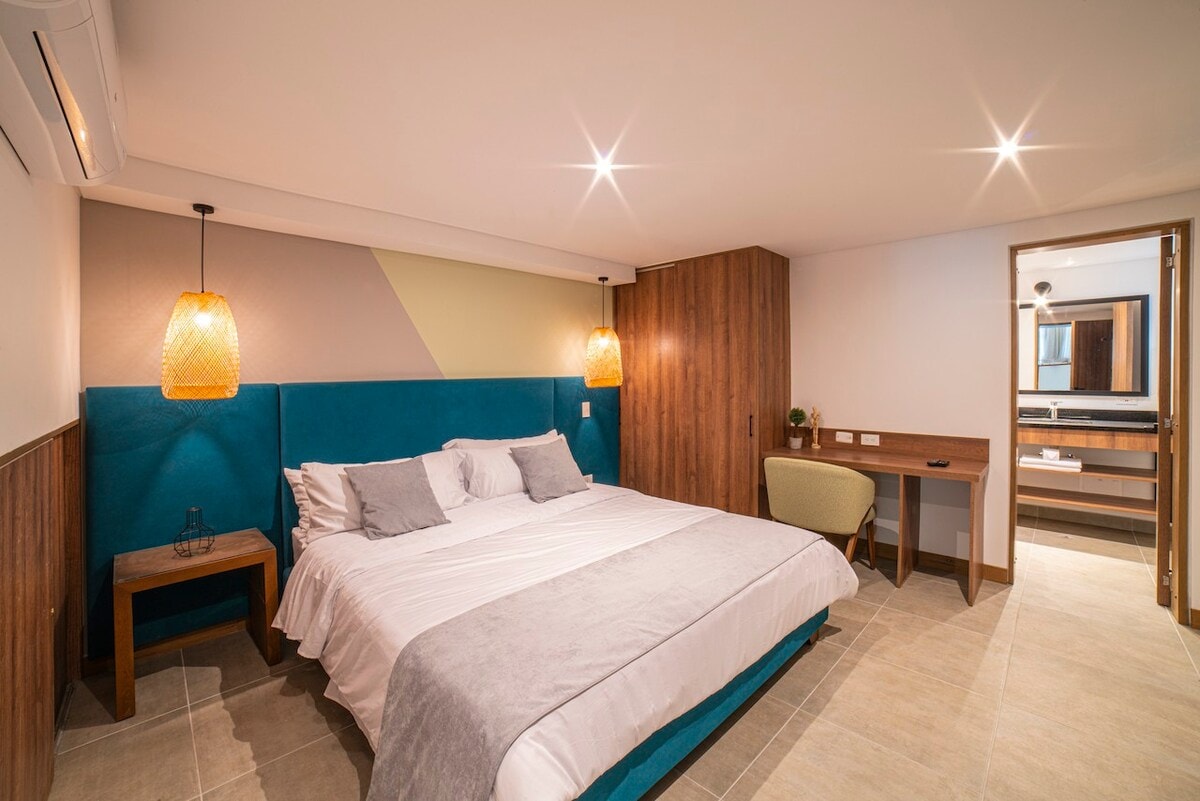 Estudio tipo penthouse de lujo en la vibrante zona de Granada, Cali, con impresionantes vistas de la ciudad. Ideal para viajeros solos, parejas o familias con dos niños. Capacidad máx para 2 personas: cama queen, sofá cama mediano (80x160 cm). Cocina equipada, lavandería, terraza, y acceso a piscina, gimnasio, spa, coworking y salas de reuniones. Disfruta clases de salsa, ecotours, avistamiento de ballenas y servicios opcionales de chef, conductor y masajista—todo a tu medida.