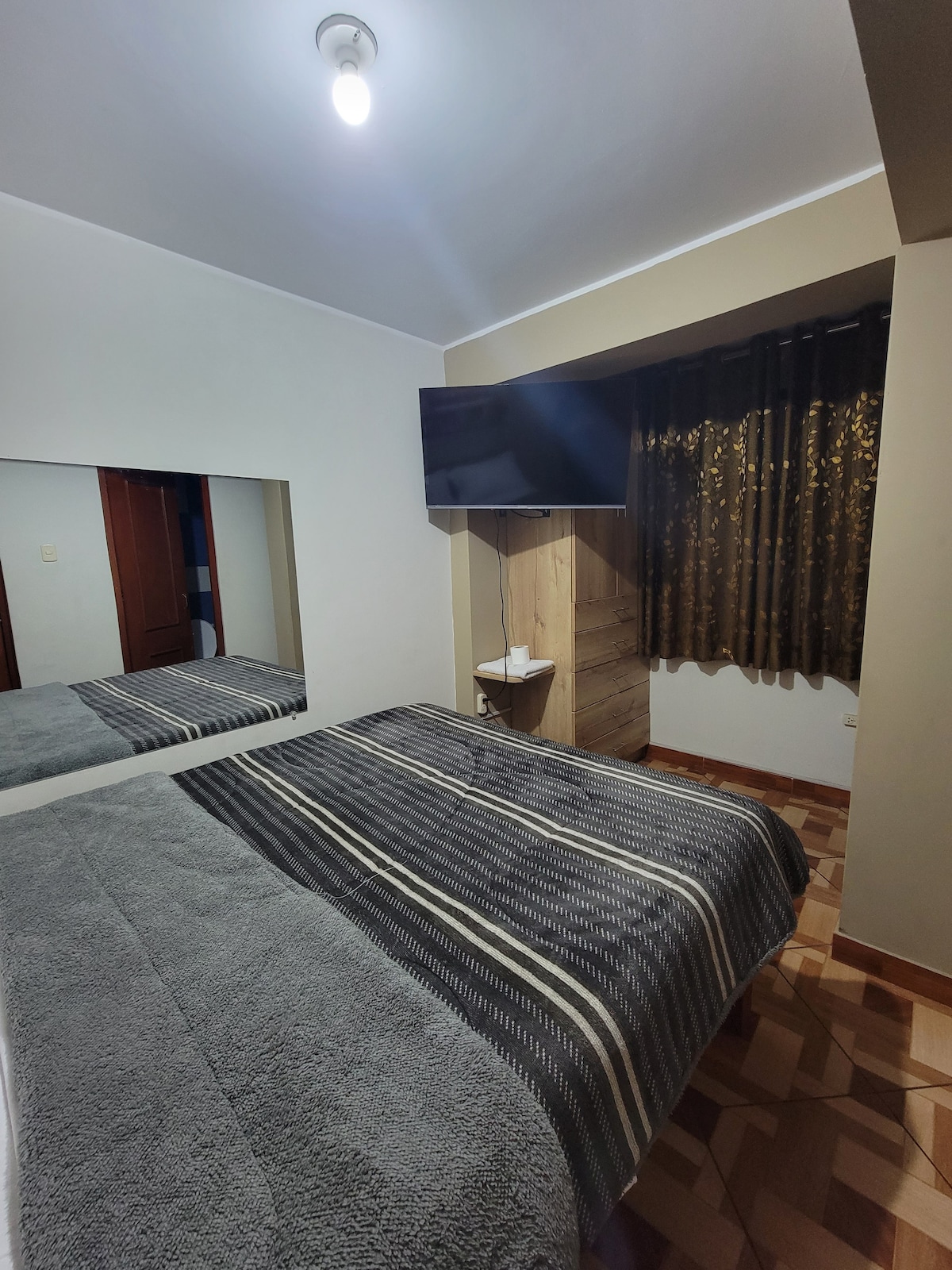 Relájate en este espacio tan tranquilo, elegante y privado con estacionamiento exclusivo. Zona completamente segura por estar en una avenida residencial y con negocios protegidos. Por estar en un tercer piso, puerta a la calle, es reservado, fresco y seguro. Asegurando comodidad con Wifi, agua caliente, Smart TV y cerca a tiendas, mercados o lavanderías, incluso puntos turísticos. Aunque mi alojamiento esta hecho para reservas de 2 dias minimo, se puede consultar para requerimientos de 1 dia.