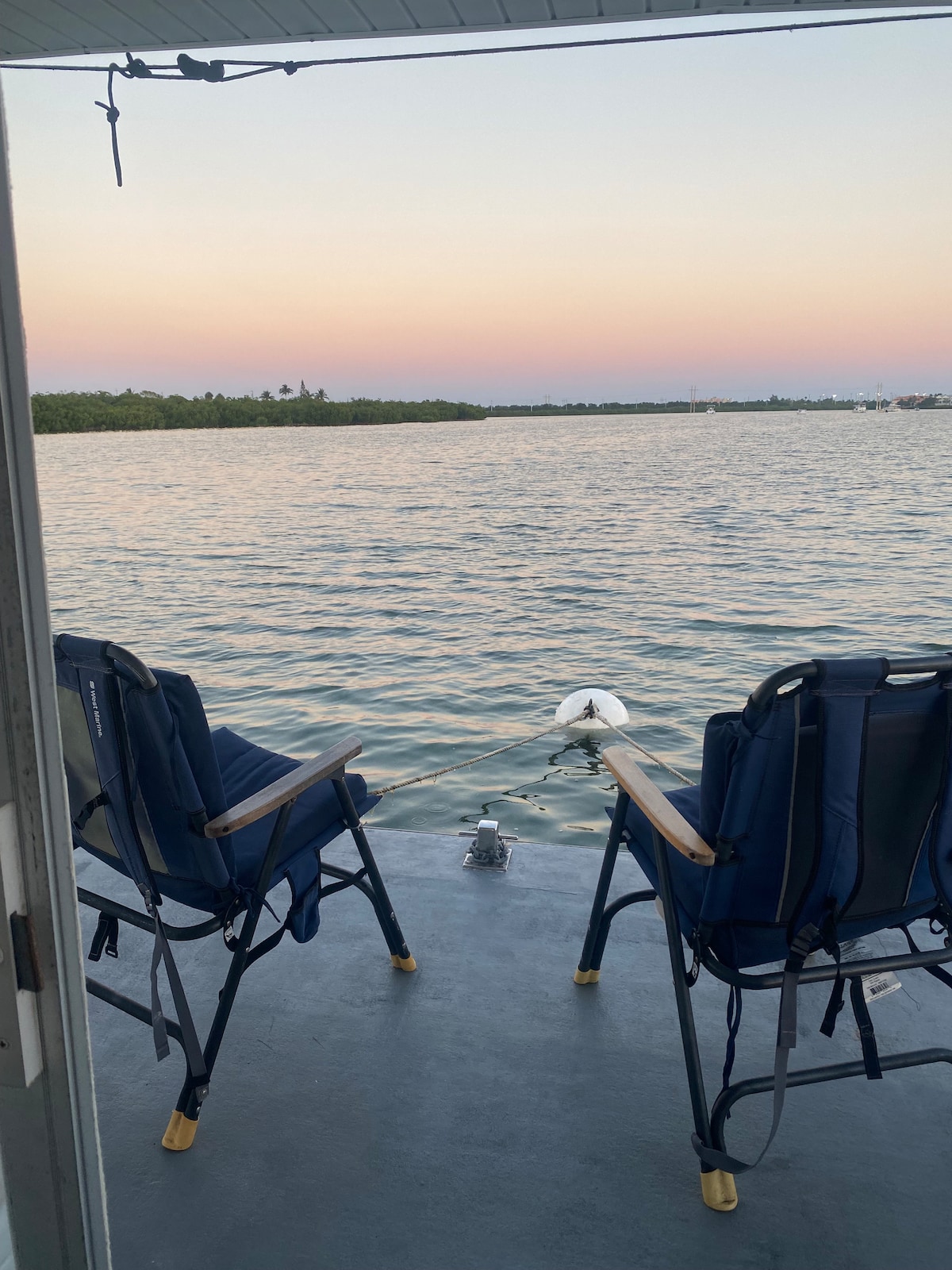 ¡Lee nuestras reseñas y relájate con la cancelación de última hora por el tiempo! 🌞 Ducha, inodoro y energía para recargar teléfonos, celular completo. ¡Disfruta de una o dos noches tranquilas en el agua! ¡Aparcamiento gratuito y un transporte de ida y vuelta gratuito a/desde Roxie por noche de estancia! Roxie está anclada en una laguna de ~3 pies. ¡Vivimos en un barco a media milla de distancia si necesitas algo! Roxie tiene una cafetera Keurig, cápsulas de café, pan, mermelada de mantequilla de cacahuete y agua embotellada. No se puede cocinar, pero puedes traer comida para llevar, cerveza/licor/vino. 🛥️🌴🎣