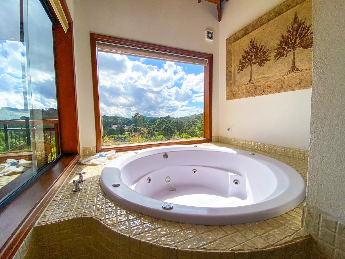 El Loft Spa Kaámomila forma parte del Kaá Ipira Vila Spa. Un lugar encantador con 30.000 m2 y solo tres sofisticados lofts preparados para el autocuidado. El loft tiene una bañera con 200 microagujeros de masaje de aire, bañera de hidromasaje para escaldar los pies y varios cosméticos vegetales para que usted mismo haga sus rituales de Matoterapia. Además, la zona común de nuestra villa spa cuenta con jacuzzi, sauna, piscina exterior y un hermoso jardín con flores y hierbas para que las puedas recoger y usar en tus baños. Relájate en este loft lleno de estilo.