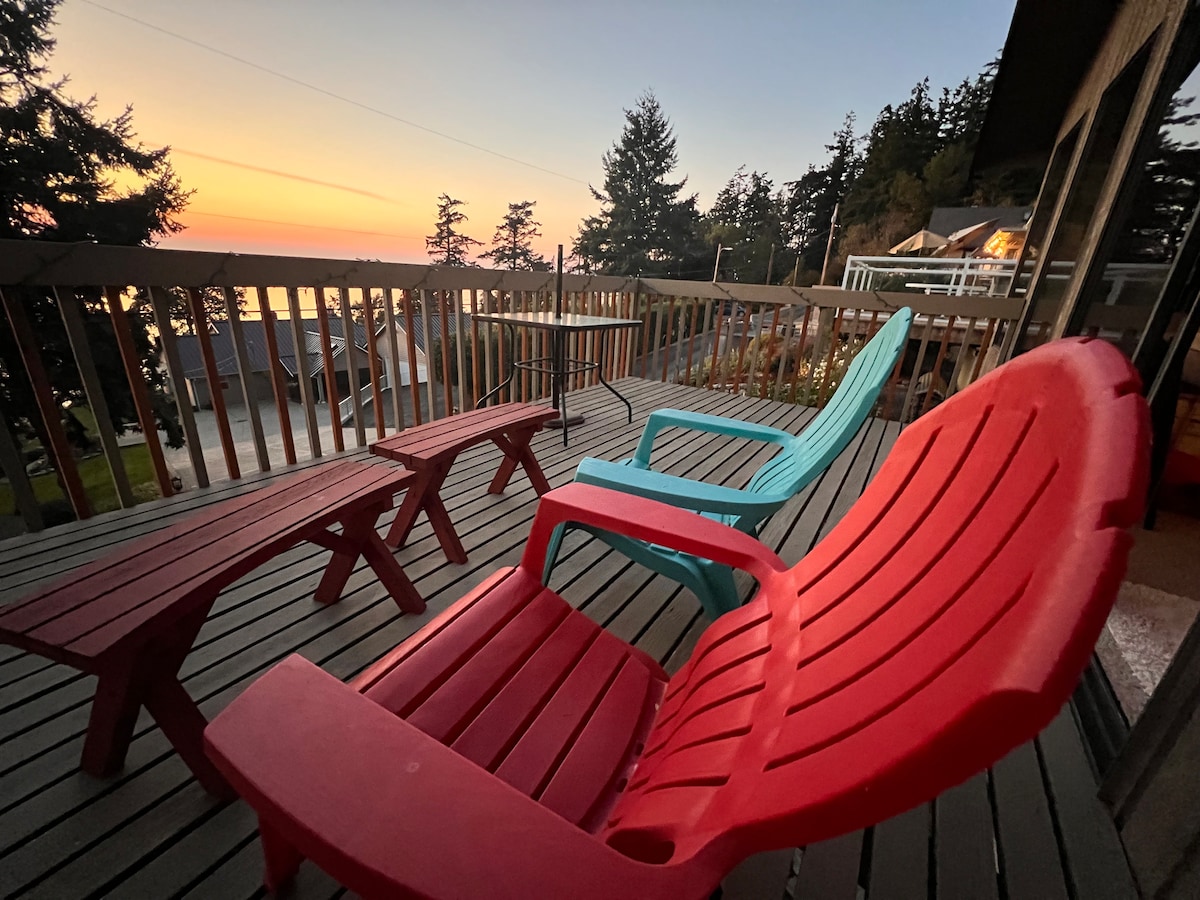 Disfruta de impresionantes vistas del estrecho y de las montañas Olímpicas mientras te relajas en una de las tres cubiertas de nuestra casa frente al mar recientemente remodelada. Nuestra moderna casa de playa cuenta con tres espaciosos dormitorios en la planta superior alrededor de una sala de estar independiente, un gran salón y comedor en la planta baja y baños en ambos niveles. Puedes ver focas, águilas calvas y ballenas mientras caminas por los escalones de la playa sin banco desde nuestra puerta principal. Bebe vino alrededor de la chimenea de propano mientras disfrutas de la magnífica puesta de sol.
