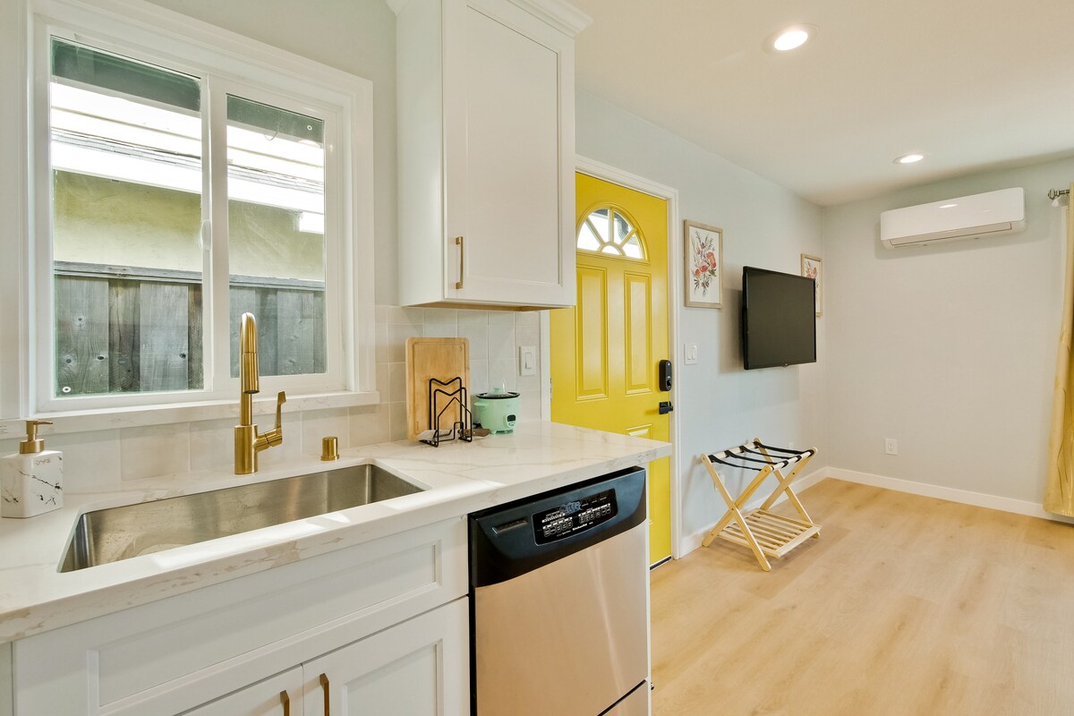 Kick back and relax in this calm, stylish space. Brand new guesthouse build and landscape completed in 2023. Our guesthouse offers a full kitchen, WiFi, self check-in, FREE parking and washer and dryer. Tesla Universal EV charger Level 2 60 amp avilable for guest use. Centrally located in Downtown San Jose. A quick drive to the SJ airport, SAP Center, San Pedro Square, Levi’s Stadium, San Jose State University and Santa Clara University.