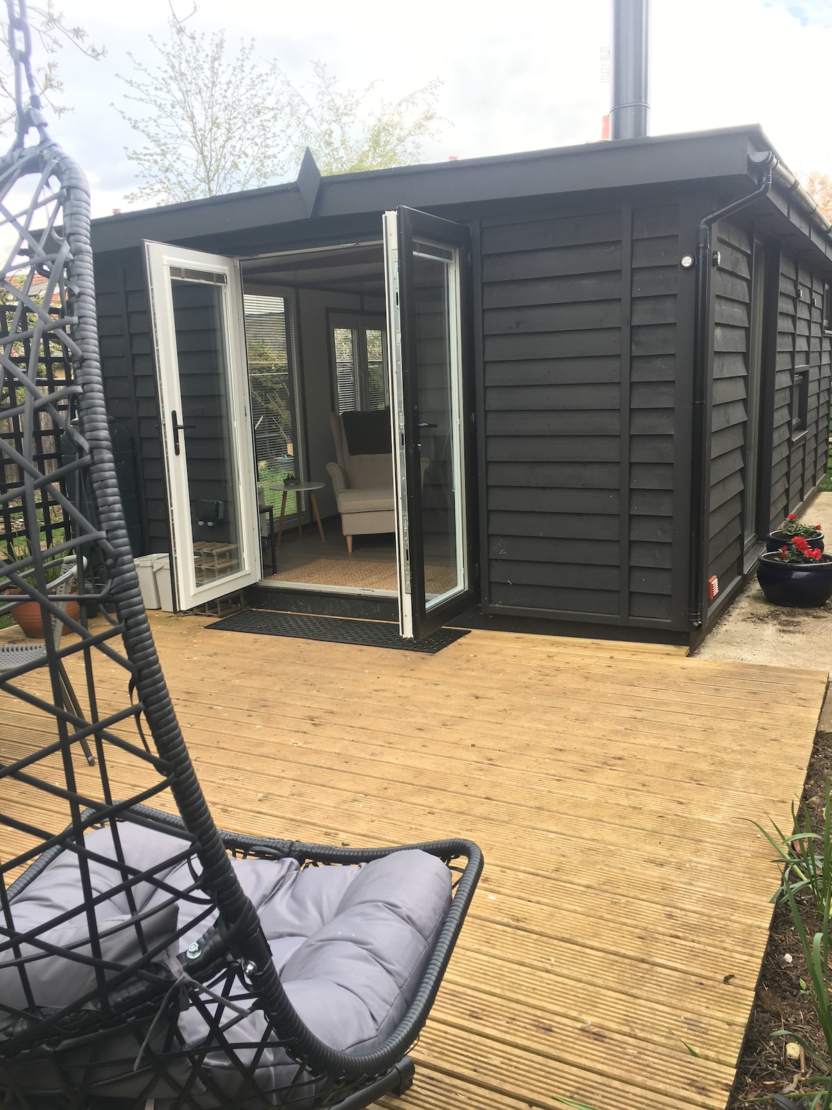 Warm, light and airy study bedroom with en suite shower and toilet and it's own small kitchen area. The studio has a separate entrance, bike parking and lovely garden view. The huge desk becomes a bed without having to put away your work! Kitchen has a single induction hob, air fryer, sink and fridge. Studio is fully equipped including all linen & towels supplied so suits overseas visitors. Change of linen and towels will be done weekly and a light clean.