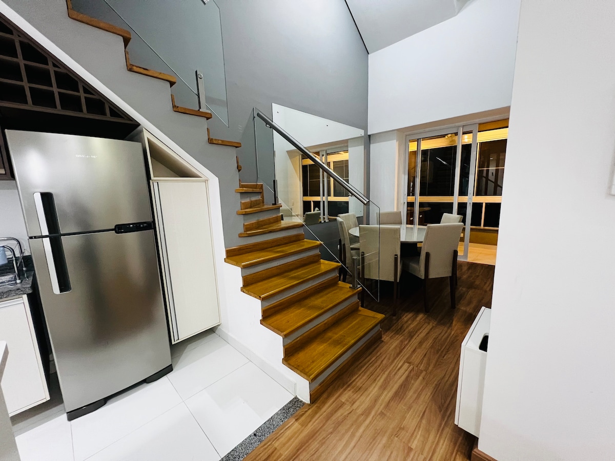 Loft con altillo, un hermoso espacio muy moderno, con dos camas dobles Queem y un sofá cama, dos baños completos y muy cerca del centro turístico de Campos do Jordão, cocina equipada para sus refrigerios e incluso pequeñas comidas diarias, estamos a solo 700 metros del centro de Vila Capivari, siendo posible ir caminando, en la parte inferior del edificio hay un encantador restaurante (Moringa) con deliciosas opciones de platos, también sirven desayuno