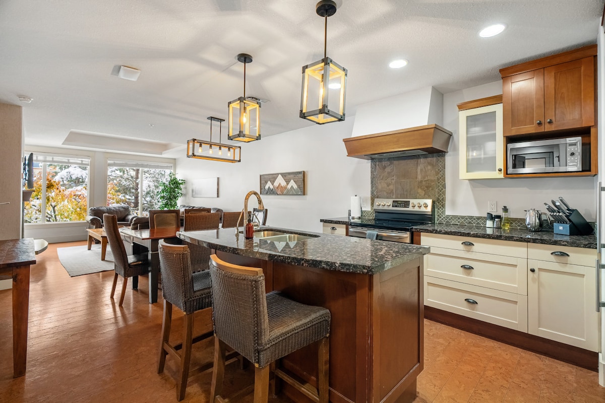 ¡Ven y vive la magia de vivir en el corazón de Canmore! ¡Despierta con unas increíbles vistas a la montaña desde tu patio privado y pasea por hermosos senderos y paseos marítimos justo afuera para disfrutar de deliciosos cafés y restaurantes a solo una manzana o dos de distancia! Después de las aventuras, sumérgete en nuestro jacuzzi en la azotea con vistas panorámicas a la montaña y disfruta de una comida frente al fuego, con nuestra cocina completa con encimeras de granito y barbacoa prémium. Además: ¡gimnasio, sala de billar y aparcamiento subterráneo climatizado!