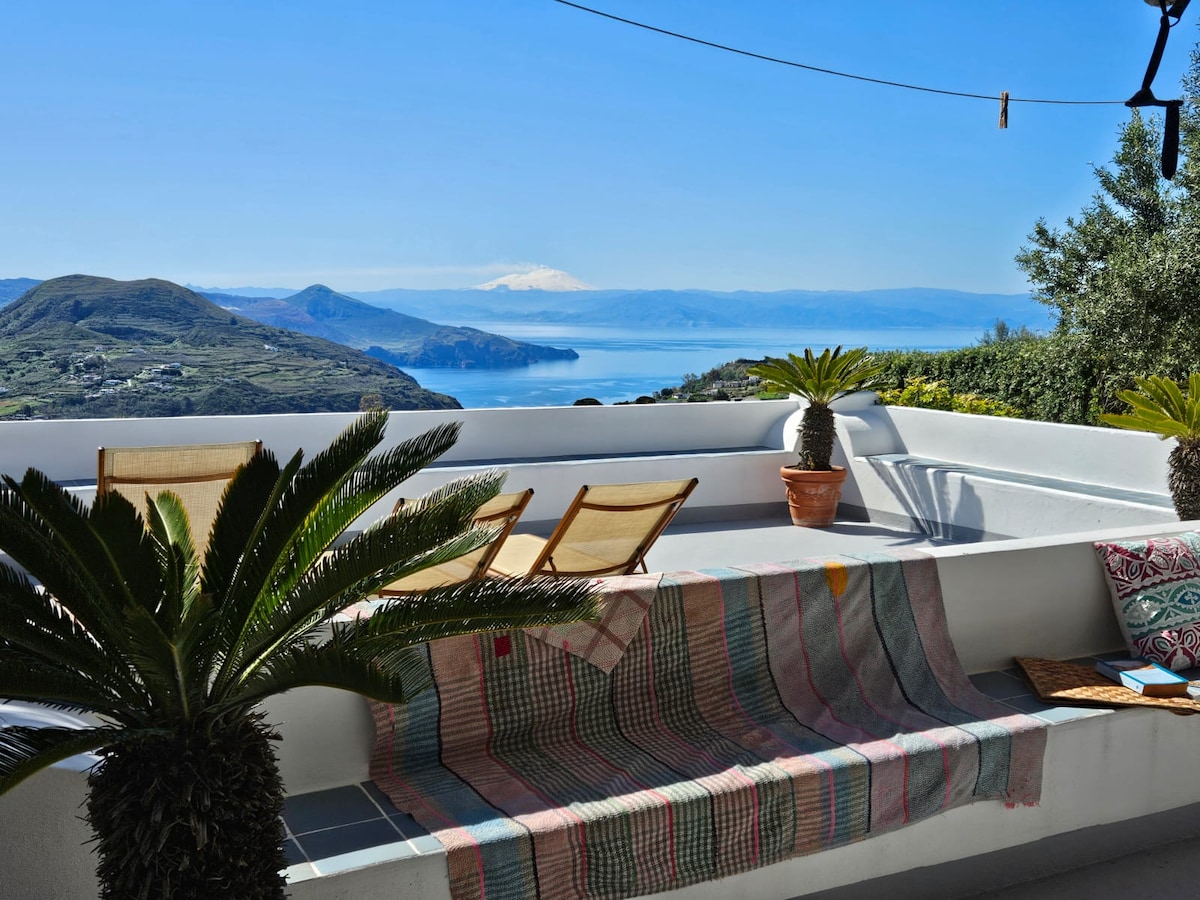Casas de vacaciones en alquiler La casa está situada en una posición encantadora e irrepetible desde donde se puede admirar desde el balcón, o desde la terraza, se puede disfrutar de una maravillosa vista del cristalino mar de Eolia. La casa está en una zona tranquila y serás mimado por el sonido del mar, una pequeña playa debajo de la casa. A menos de 10 minutos a pie desde el centro y usted no tendrá que alquilar vehículos, súper conveniente .