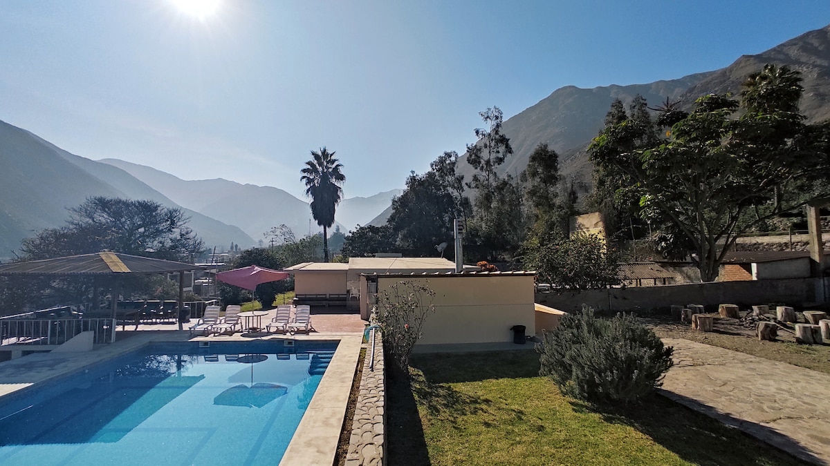 🌿 ¡Disfruta una escapada inolvidable en nuestra Casa de campo en Santa Rosa de Quives! Sal de la rutina y conecta con la naturaleza en un ambiente tranquilo y acogedor, relájate, disfruta con tu familia o amigos, y vive momentos únicos rodeado de aire puro y paisajes hermosos. 🌟 Lo mejor de nuestra casa: • 📌1h 30 min de Lima • 🏊♀️ Piscina privada • 🍽 Cocina equipada (menaje + electrodomésticos) • 🎯 Futbolín • 📺 DirecTV • 🔥 Parrilla • 🛏 Espacio amplio