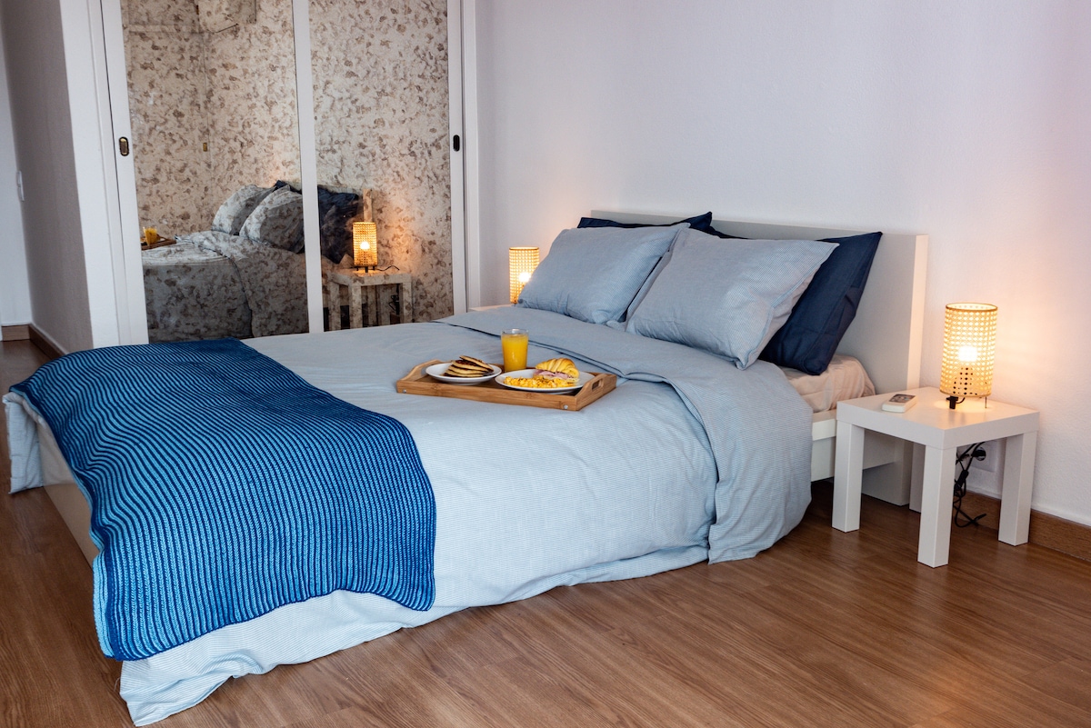 Surf en el mar y la ciudad: apartamento en la playa con aire acondicionado