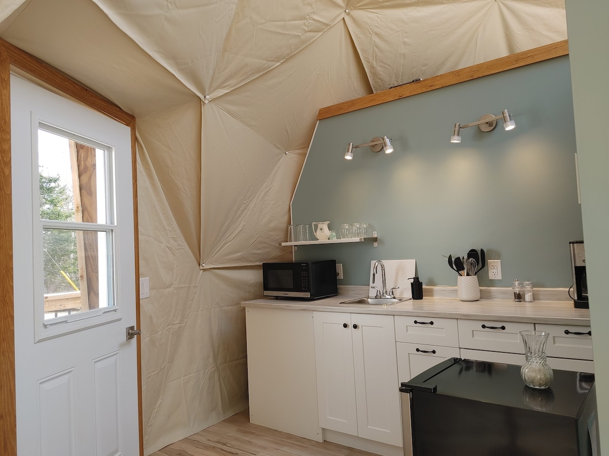 Número #1 Dome Village en Norteamérica. Da la bienvenida al Oasis de South Harbour Cape Breton. Ven donde las montañas se convierten en Sand, donde John Cabot hizo un puesto en el corazón de las Tierras Altas. Reserva tu estancia dentro de la tienda de campaña más nueva y popular Glamping, The Geodesic Dome. Disfruta de la serenidad de tener tu lugar privado en el bosque con la vista del puerto desde tu habitación. Baños privados en las cúpulas. Estás cerca de todo lo que ofrece Cape Breton Highlands. Una estancia para recordar.