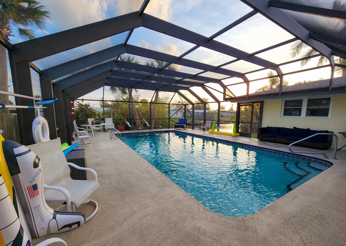 Algo para todos los miembros de la familia en esta casa con piscina frente al canal. Situado entre los parques Disney y Cocoa Beach, cerca de tiendas, restaurantes, con la tranquilidad y privacidad de un barrio tranquilo. Los lanzamientos de cohetes se pueden ver desde el patio delantero o a pocos minutos en el muelle de Cabo Cañaveral. Siéntete como si estuvieras en casa lejos de casa mientras estás de vacaciones.