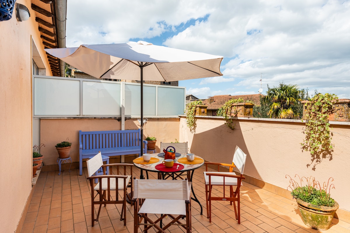 Apartment in the historic centre on the cliff of Orvieto, with a 180 degree view of surrounding hills, full of light and in a very quiet place where you can spend days surrounded by greenery and art. This apartment is for people that during their holidays like to spend a bit of time to relax and enjoy the great food and countryside of this lovely town. The position is very good , just 5 minutes from the parking lot and from beautiful cities and hot springs.