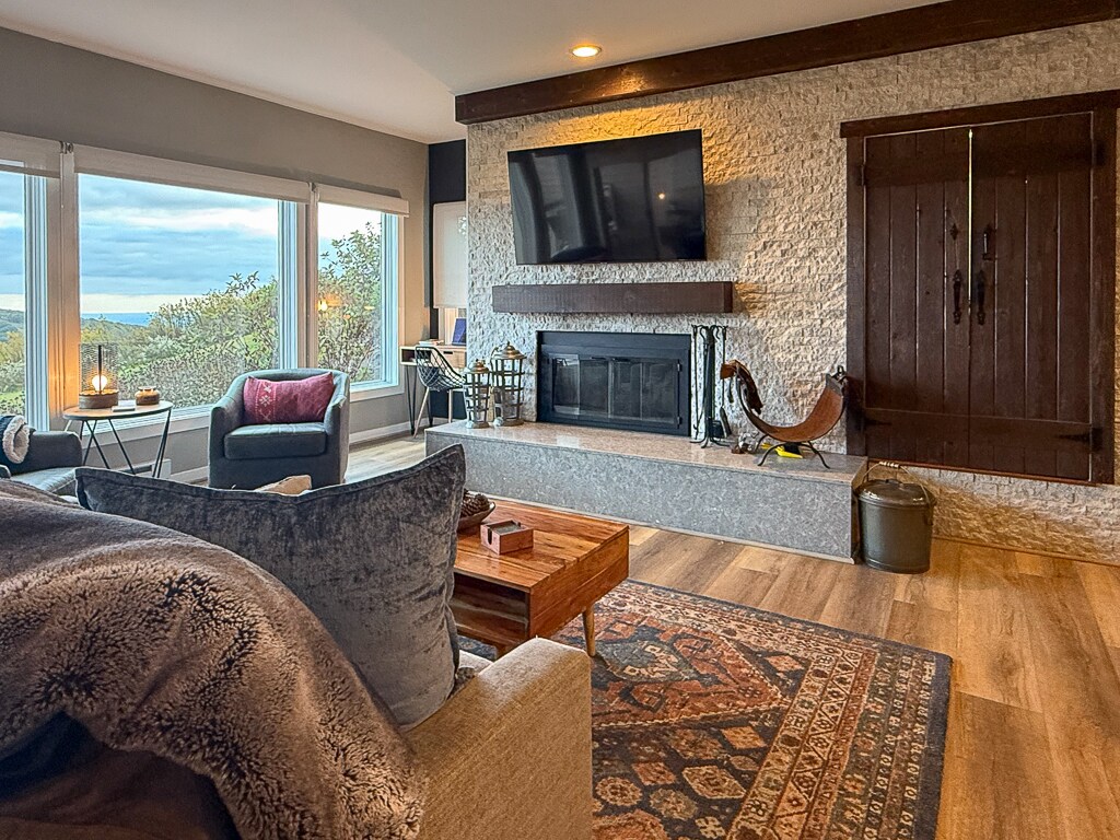 GREENWOOD VISTA - Escápate a nuestro moderno refugio de montaña ubicado a lo largo de las montañas Blue Ridge. Ya sea que desees explorar el Parque Nacional Shenandoah, visitar bodegas o relajarte en nuestra bañera de hidromasaje con impresionantes vistas a la montaña, esta hermosa casa en forma de A es el lugar perfecto para ti. Hemos equipado cuidadosamente nuestra casa con todo lo que necesitas para estar cómodo. Desde una lujosa suite de dormitorio, cocina totalmente equipada, hasta café y bar, sauna, parrilla al aire libre, mesa de billar y una acogedora chimenea.