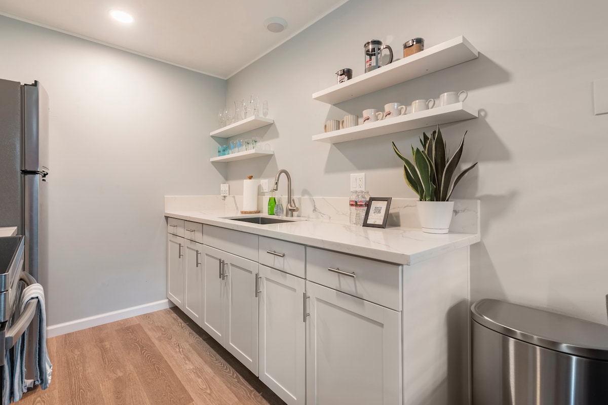 Beachside Bungalow se encuentra en el corazón de Carlsbad Village, a pocos pasos de la playa, restaurantes y bares. Está recién renovado con dos zonas de descanso/comedor al aire libre e incluye aparcamiento cubierto reservado, una cama tamaño king, un sofá cama tamaño queen, wifi rápido (compatible con WFH), TV inteligente grande, una cocina totalmente equipada, accesorios de playa (sillas + toallas) y aire acondicionado en el dormitorio para que puedas dormir cómodamente durante todo el verano.