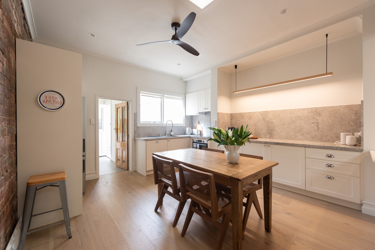 Un gran estudio independiente lleno de luz. Decorado con una paleta escandinava minimalista. Esta casa bien equipada ofrece una cocina completa con instalaciones de cocina de inducción, horno de convección y todo el equipo para preparar una comida romántica. Una zona de dormitorio bajo altos techos abovedados decorados con una cama tamaño queen, colchón de lujo y sábanas de algodón egipcio, es un espacio relajante y espacioso para relajarse después de un día de exploración. Un baño elegante y moderno que cuenta con una ducha de efecto lluvia es la manera perfecta de relajarse y disfrutar de las mañanas de Melbourne. Los huéspedes tienen acceso a su entrada privada y al patio con un jardín al aire libre para desayunar y compartir una charla junto a un pequeño jardín de hierbas orgánicas. Michele y yo estamos disponibles para cualquier pregunta, historias y recomendaciones sobre qué hacer en Melbourne. Ubicado dentro de la vegetación y los parques de Princes Hill y Historic Carlton, está a pocos pasos del pueblo de Rathdown Street y de los icónicos restaurantes «Little Italy» en Lygon St. Luego, acomódate para ver una película en el cine local Arthouse Cinema Nova. Estamos situados a 5 minutos a pie de las líneas de tranvía que se dirigen a la ciudad, Sydney Road y Brunswick East, y hay aparcamiento disponible alrededor de la casa o simplemente puedes ir en bicicleta como un verdadero lugareño.