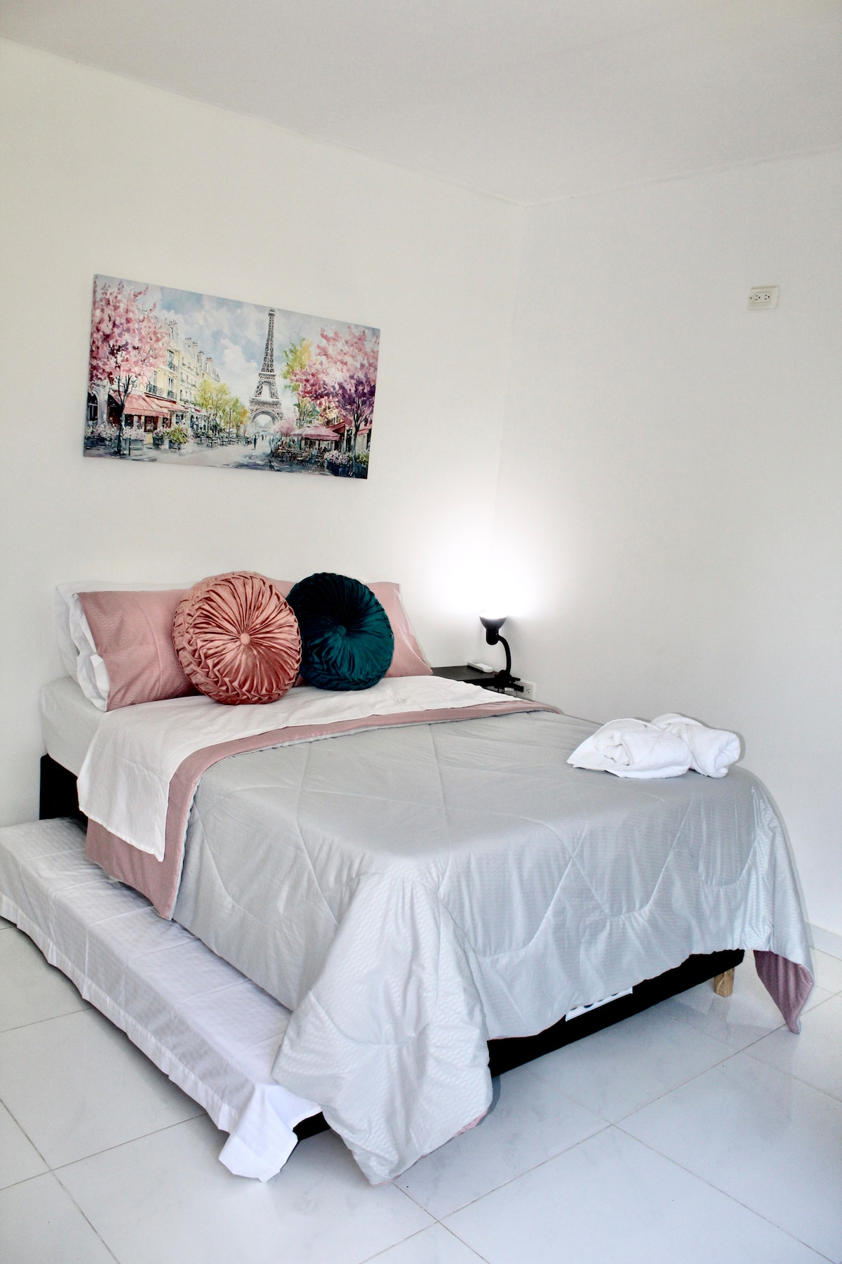 Disfruta de la sencillez de este alojamiento tranquilo y céntrico. Este moderno y cómodo apartamento de 3 habitaciones habilitadas, ideal para hasta 6 personas. Perfecto para familias o grupos de amigos que buscan disfrutar de un lugar seguro y tranquilo. El apartamento cuenta con aire acondicionado en la habitación principal, parqueadero, piscina con tobogan , zona BBQ . Las habitaciones y cocina están equipadas para que te sientas como en casa, estufa eléctrica disponible únicamente.