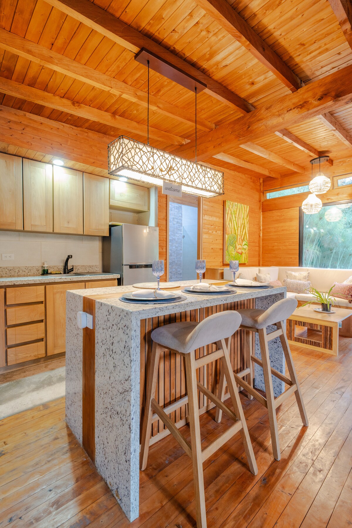 🌳Escápate a un refugio en las montañas donde el diseño contemporáneo se mezcla con la naturaleza! Disfruta de espacios minimalistas, vistas panorámicas y la comodidad que te mereces. Relájate junto a la chimenea, en el turco con aromas de eucalipto, o en el jacuzzi mientras ves el atardecer. Ideal para escapadas románticas, planes con amigos o retiros inspiradores. ¡Vive la magia de la montaña con un diseño único!✨