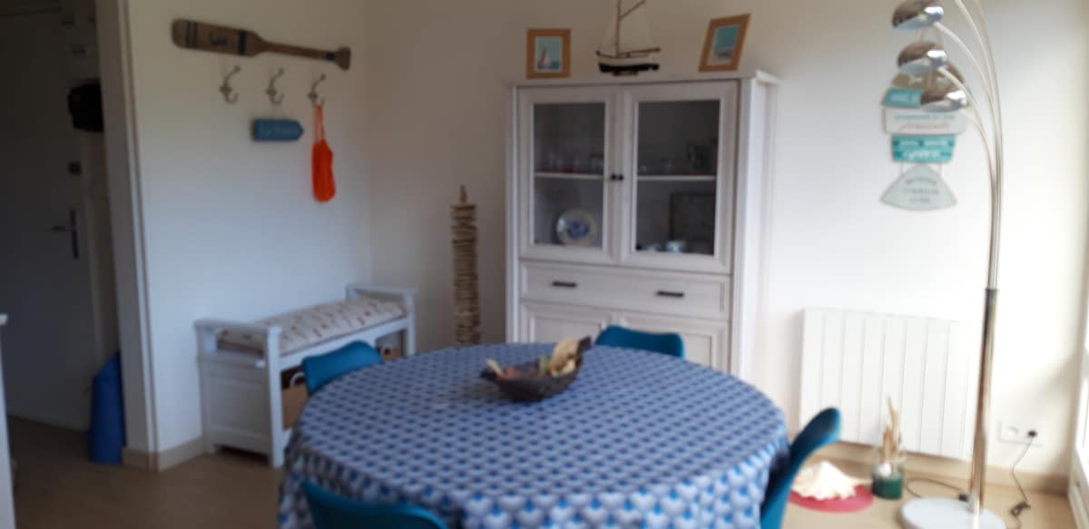 Appartement F2 de 42 m2 avec terrasse de 25 m2,sans vis à vis,plein sud dans une résidence calme et sécurisée.Tout confort,cuisine aménagée,WC séparé,place de parking privée.Couchage pour un bébé ou un jeune enfant.Le linge de maison est fourni .WI-FI.3 mn à pieds de la grande plage, Casino Jeux, piscine.A 2 mn en voiture de la Thalasso.Proche du centre ville et de l'embarcadère pour les îles.Local vélos.Ménage non facturé, donc à la charge du locataire quittant.