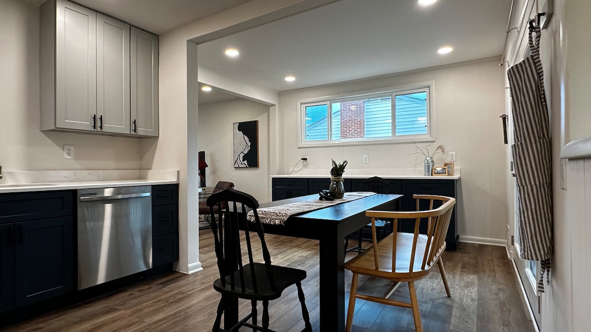 Ubicado en el condado de Baltimore, este acogedor alojamiento en Airbnb está completamente renovado y cuenta con una cocina bien equipada, una barra de café y un amplio sótano ideal para reuniones. ¡Con acceso a un amplio patio trasero cercado, ideal para relajarse o jugar! Esta propiedad está cuidadosamente diseñada con un toque de lujo y cuenta con habitaciones espaciosas, incluida una suite principal en el segundo piso. A solo unos minutos del centro de la ciudad, puede alojar cómodamente a seis huéspedes y cuenta con estacionamiento para tres vehículos. Nota: ¡Las encantadoras escaleras empinadas le dan carácter!
