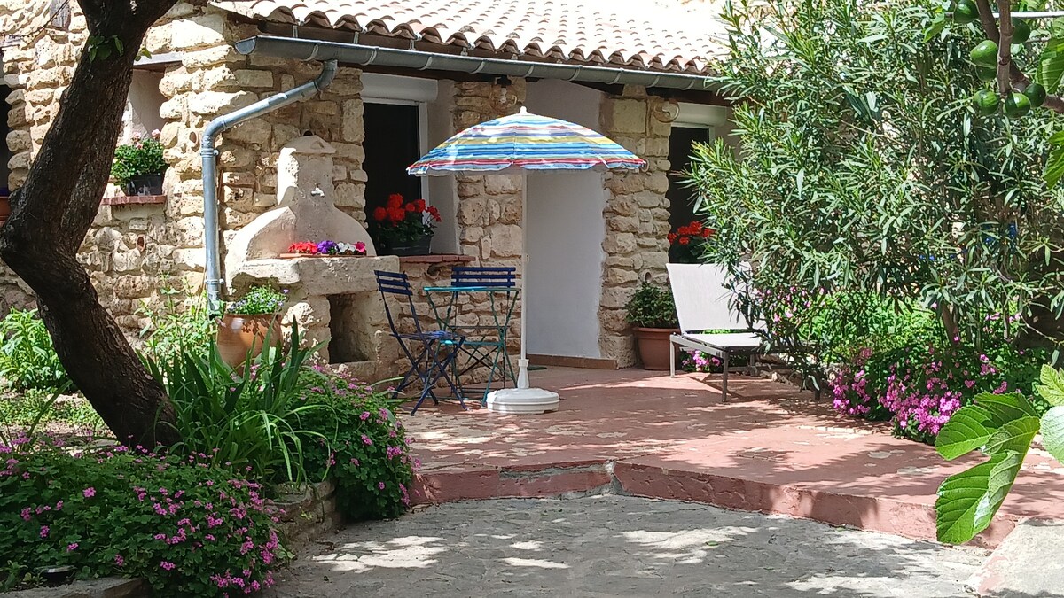 Le charme de la pierre dans un écrin de verdure avec salon de jardin et stationnement privé dans la cour . Cette maisonnette de plain pied située au cœur du village de Bédoin est proche à pied de toutes commodités; commerces, restaurants, pharmacie .Le marché provençal du lundi matin ( d'avril à octobre ) vous éblouira. C'est l'étape idéale pour les sportifs ( 3 personnes max ) cyclistes ou randonneurs amoureux du Ventoux , des gorges de La Nesque et des magnifiques paysages provençaux.