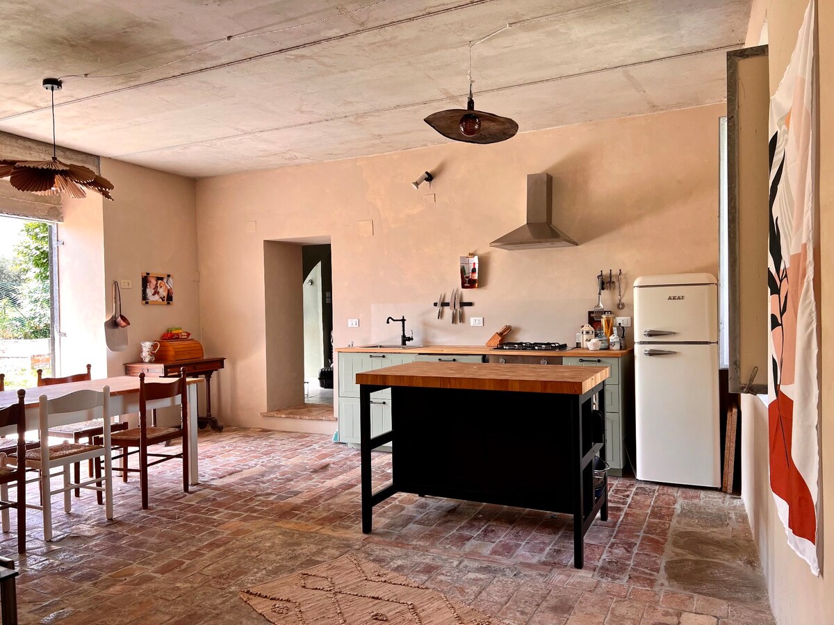 Antigua casa rural del 1800 completamente renovada con todas las comodidades ubicada en las afueras de un pequeño pueblo en los pre-Apennines de los Abruzos. A 30 minutos en coche de la costa adriática, a 40 minutos de las montañas Gran Sasso y Maiella (+2000 mt) y a 2 horas en coche de Roma. La casa está equipada con una terraza de madera de 20 m² orientada al sur con vistas al valle y al bosque circundante, adecuada para cenas y almuerzos al aire libre, yoga, meditación en total tranquilidad y privacidad.