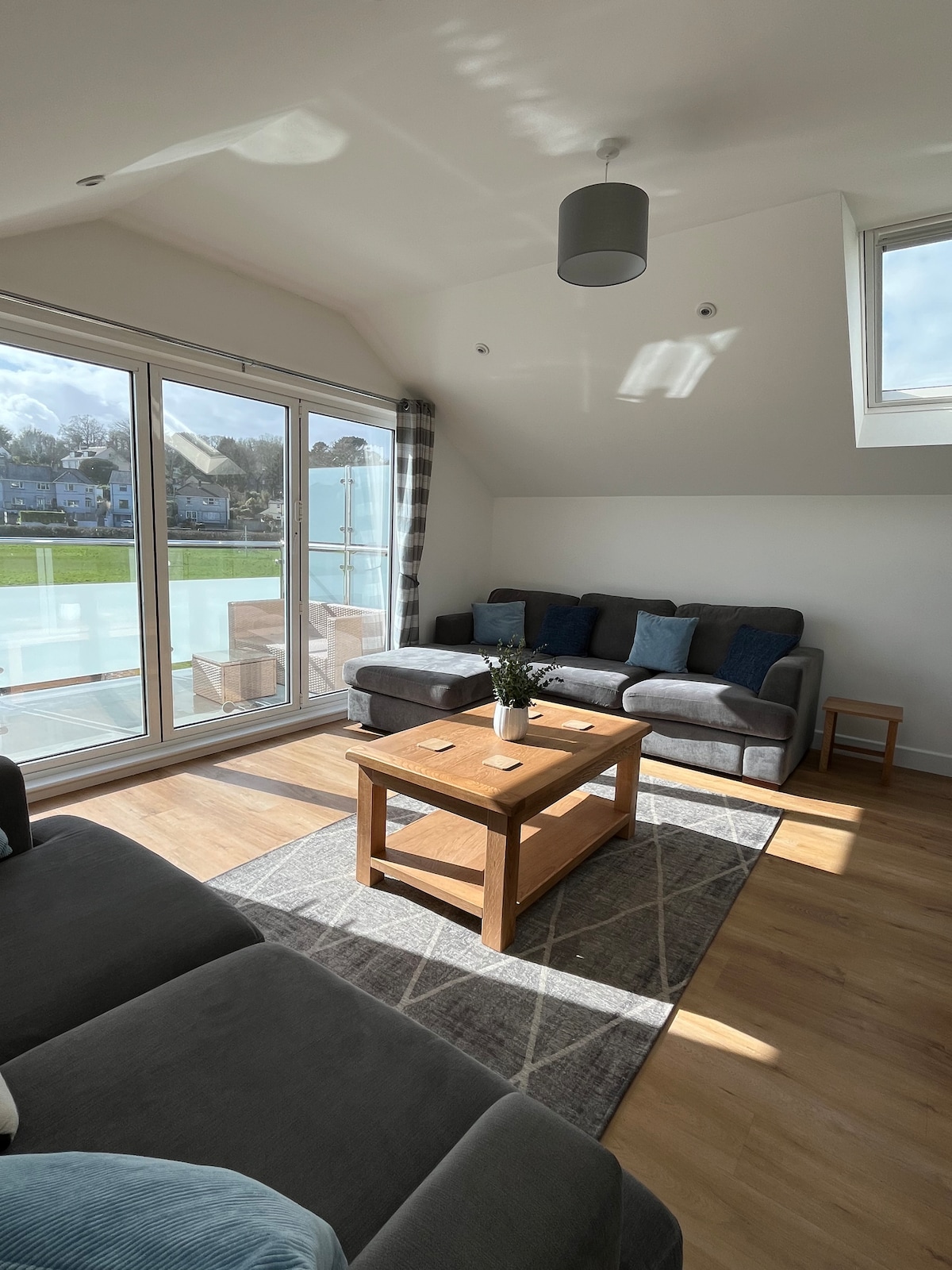 A modern, light, self-contained studio with open plan stairs to a small double low loft bed, in a mezzanine sleeping area, with sloping ceiling (partial height restriction). Private entrance to an open plan kitchen and lounge, with a shower room. This scandi-inspired space is suited to cosmopolitan travellers. Only 5 mins walk to Falmouth town centre, cafes, bars and restaurants and to Gyllyngvase beach, Dell train station and Falmouth University. Off road parking on shared driveway.