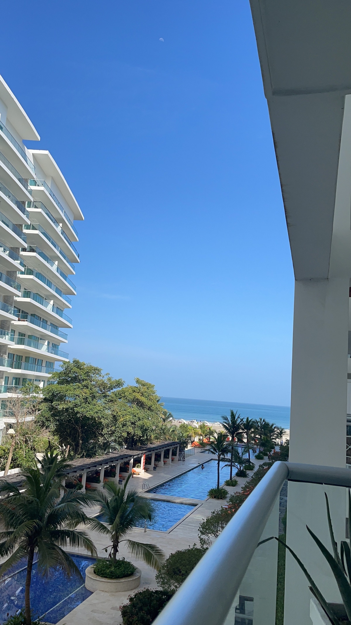 Romántico y acogedor apartamento de 1 dormitorio en Morros Ultra, situado en Boquilla, la tranquila zona de playa norte de Cartagena, cerca del casco antiguo y del aeropuerto. Decorado en suaves blancos y azules, con una cama tamaño king, 2 baños completos, cocina completa y wifi. El sofá cama tiene capacidad para 2 personas más, pero es ideal para parejas. Disfruta de 3 piscinas infinitas, sauna, gimnasio, seguridad 24 horas y acceso directo a la playa. Perfecto para una escapada relajada, unas vacaciones de trabajo junto al mar o una estancia costera con estilo, llena de luz, calma y encanto.