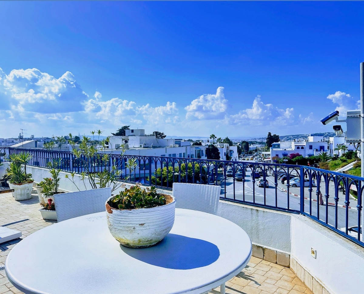 Profitez d'un logement élégant et central, en plein cœur de Sidi Bou Said. Idéal pour des séjours en famille ou entre amis , a côté de toutes les commodités , en bas du village historique. Un grand appartement, étage de villa indépendant très joliment décoré et tres bien équipée. Vous pourrez également profiter de sa grande terrasse avec une magnifique vue lors de belles soirées d’été