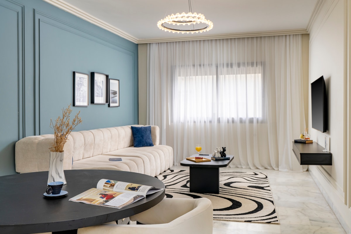 Relájate en nuestro lujoso estudio, donde la comodidad se encuentra con la comodidad en uno de los vecindarios más atractivos de Casablanca. Con un diseño elegante, un gimnasio privado y un amplio balcón, perfecto para tomar tu café por la mañana o disfrutar de impresionantes vistas por la noche. Con los mejores restaurantes, tiendas y atracciones imprescindibles a pocos pasos, tendrás todo a la vuelta de la esquina. Ya sea que estés de visita por negocios o por placer, es la escapada ideal para relajarte y recargar energías.
