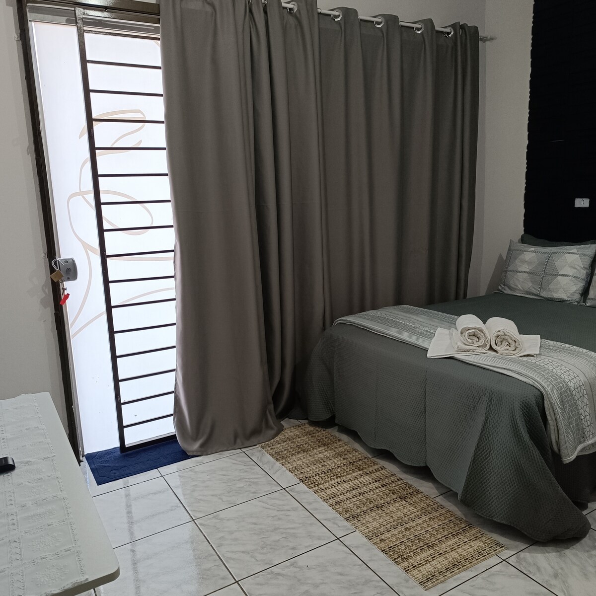 Nuestro espacio tiene una suite amueblada con una cocina adjunta, con todo lo que tú y tu familia necesitáis para vuestra estancia. Precio asequible. Situado entre las facultades de Fag y Univel, a media manzana de la Av. Cerca de mercados y farmacias, y a 500 metros del parque ecológico oeste y Cisop. Tiene ropa de cama, toallas de baño, todo desinfectado, almohadas, mantas. ¡Ven a alojarte con nosotros y échale un vistazo!