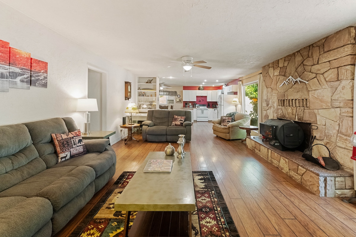 Descubre el encanto de nuestra casa de campo familiar de 1800 pies cuadrados en el corazón de la histórica ciudad ferroviaria de Dunsmuir. Este refugio cuenta con espacios acogedores y bellamente cuidados, lugares de reunión aptos para niños y una cocina de chef. Sal a la parte trasera y déjate llevar por el encantador y privado refugio al aire libre. Disfruta de la comodidad de estar cerca de restaurantes del centro de la ciudad, ríos, lagos, senderismo y cascadas, todo a solo 15 minutos del parque de esquí del monte Shasta. Esto lo convierte en tu escapada perfecta para toda la temporada.