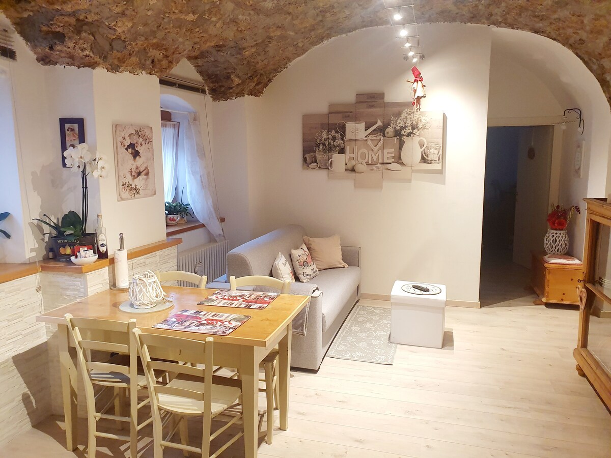 Apartamento con características bóvedas de cañón y piedra vista. El grosor de las paredes garantiza un microclima fresco en verano y cálido en invierno. El apartamento ha sido completamente renovado y se encuentra en la planta baja de un edificio de pocas unidades en el centro histórico de Villa Lagarina, con vistas al patio, a 5 minutos de Rovereto y a 30 minutos del lago de Garda y Trento. Wifi gratuito. Impuesto turístico a partir del 1/1/2021: 1,00 €/día por persona (>14 años). Regalo del Trentino para estancias de 7 días