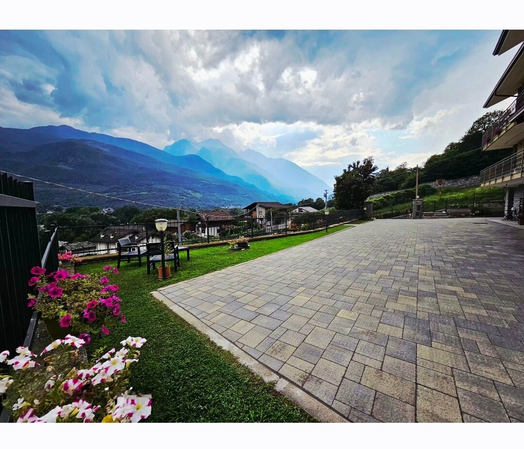 Típica casa del valle de Aosta con jardín
