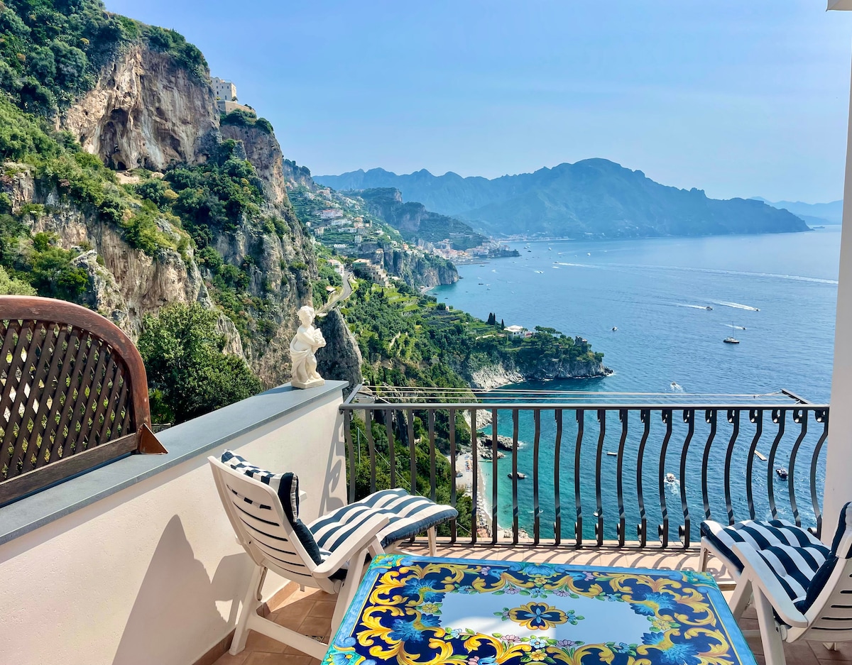 Junto al centro de Amalfi, Villa Angela, suspendida entre el cielo y el mar. Inmerso en la exuberante vegetación, el apartamento se encuentra a pocos pasos (unos 30) de la calle principal donde puedes aparcar tu coche. Desde el apartamento se puede disfrutar de unas impresionantes vistas a la costa de Amalfi y al mar.