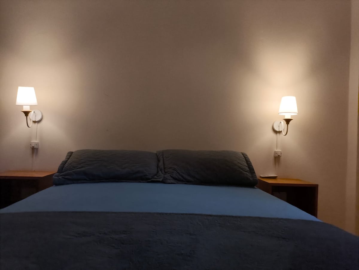 Situado en Puerto Iguazú, el Departamento se encuentra en la Tercera planta, hay que subir escaleras, tiene un dormitorio espacioso cómodo, mantas a disposición, ropa de cama con amenities incluidos. Tiene un comedor, sala de estar amplia con TV con Netflix. A una cuadra se hallan maxi kiosco , panadería y farmacias, vinotecas. Caminando dos cuadras son 5 minutos, se encuentra el Supermercados EOS. Locación: 5 cuadras a la terminal y 3 cuadras al centro.