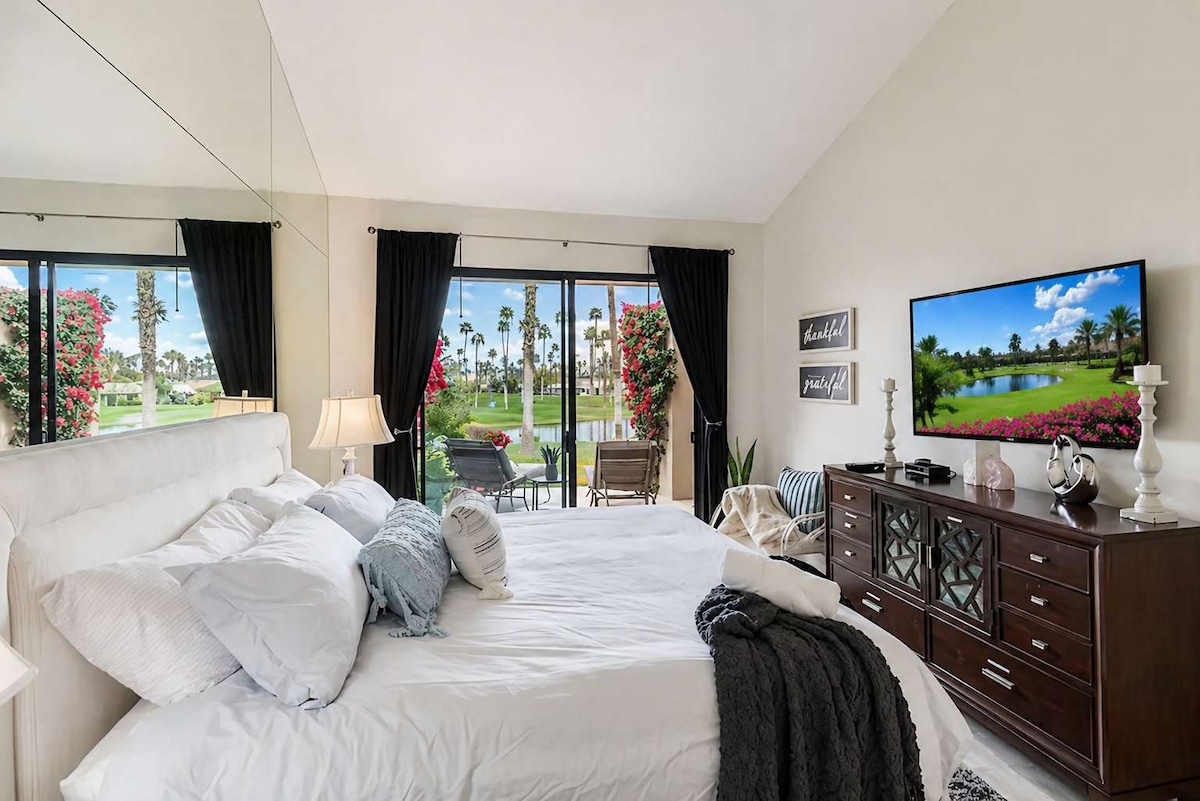 El Legacy Palms es un apartamento de 2 dormitorios y 2 baños recién reformado, espacioso y luminoso con un ambiente moderno del desierto de California. Las puertas francesas se abren a un gran balcón privado con comedor y sala de estar, con vistas a los exuberantes jardines de la villa y a las fuentes de agua. Cuenta con una cocina completa con electrodomésticos nuevos de acero inoxidable, 3 televisores inteligentes, comedor, 2 chimeneas y sofá cama tamaño queen en la sala de estar. Los terrenos de la comunidad cuentan con 12 piscinas climatizadas y spas, gimnasio, hamacas, parrillas y mucho más.