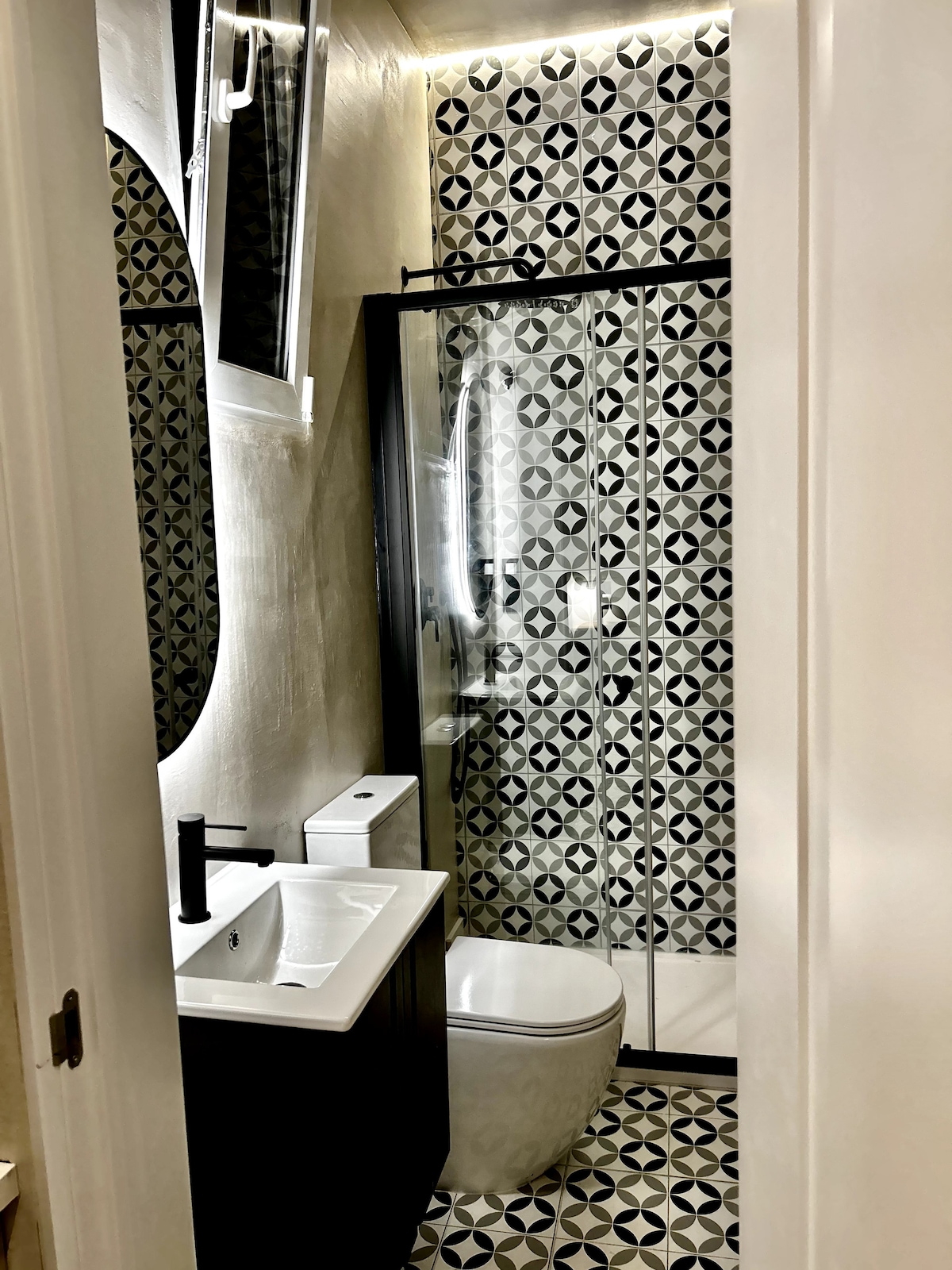 I want to welcome you to one of my new Suites in the center of Barcelona. Around 40 square meters, perfect for couples and solo travelers looking for a unique experience in the most authentic Barcelona, surrounded by the best shops, restaurants. Tourist spots just a few steps away. Enjoy this wonderful space filled with natural light, with a modern and warm decoration that blends harmoniously with the 3-metre-high ceilings and the recently restored original mosaic floors. No lift available