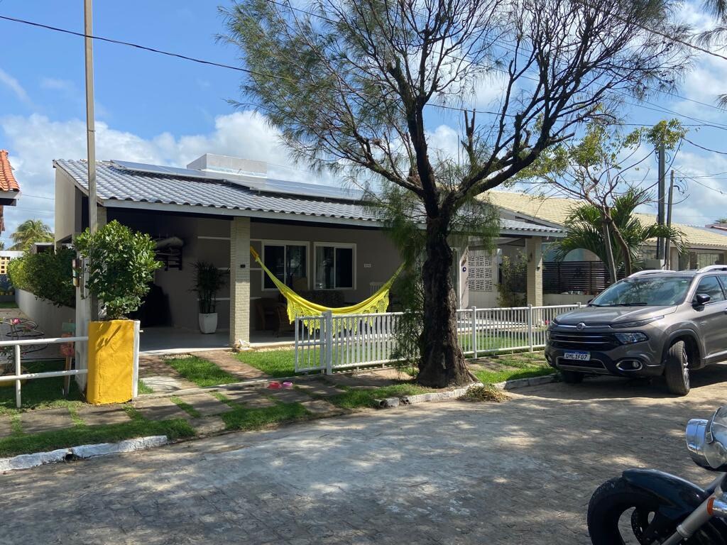 The house is located inside a private Condominium, which is just 740m far from the beach. The condominium has a security guard at the entrance gate, a complete leisure area (swimming pool, gym, courts, games room), and a magnificent pond measuring over 9,000m², ideal for those who love fishing or taking walks while admiring the sunset. The house has a private pool, 3 suites with ar conditioner, 1 suite with fan, all kitchen appliances, and security cameras on the front and back entrance doors.