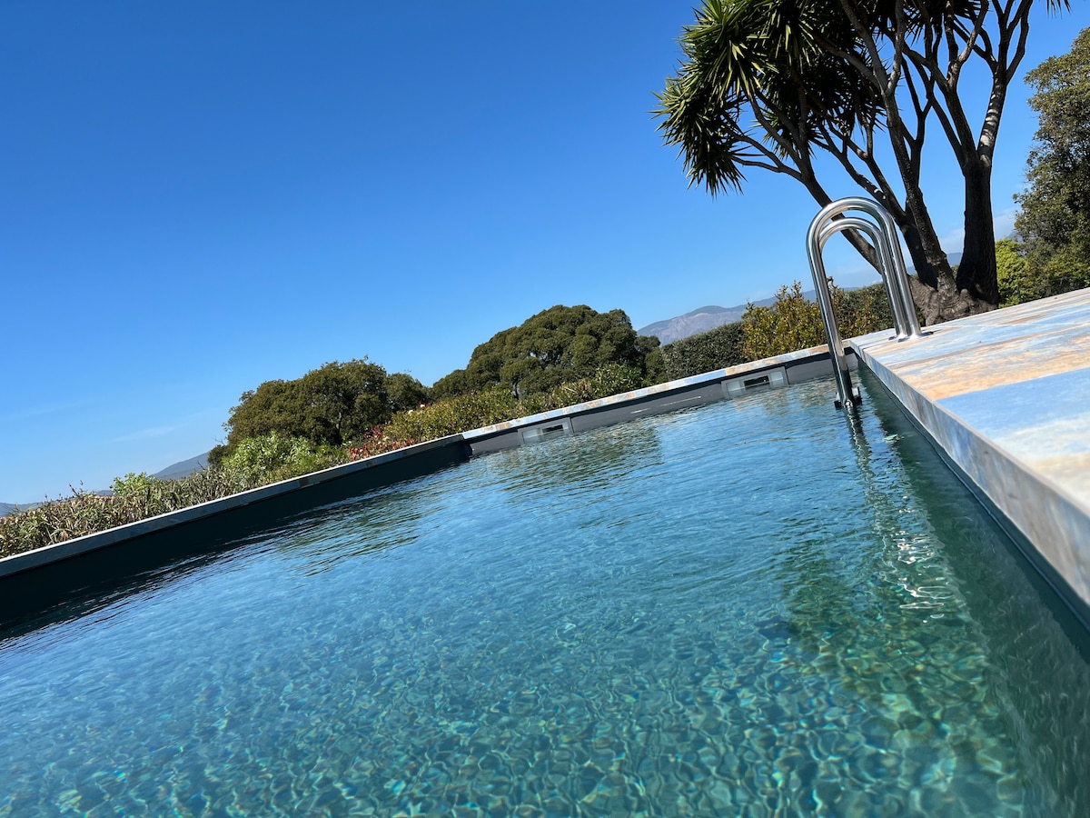 Villa contemporaine et écologique, en bord de mer qui offre une vue imprenable sur la baie du Valinco, au coeur du maquis et des oliviers. Elle se situe à 250 mètres des plages, et dispose d'une piscine chauffée, à débordement avec volet en plein centre de Abbartello et à proximité des commerces et des restaurants. Cette location est entièrement meublée, avec des prestations para-hôtelières (accueil, fourniture de linge de maison, draps de lits, serviettes de toilettes, et ménage régulier)