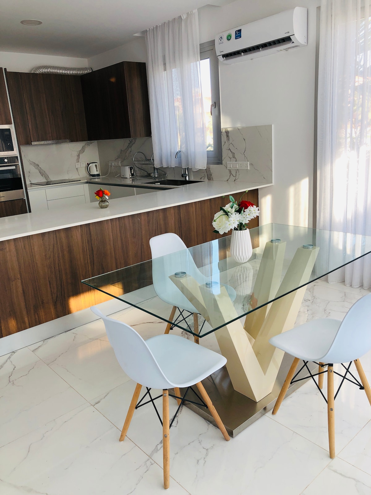Apartment is 72 sq.m. and extends itself to 16 sq. balcony where one can enjoy great sights to the Mediterranean sea; it has 3 bedrooms and 2 bathrooms and is fully equipped with all the essentials. The wonderful Thalassa beach is located just few minutes walk from the apartment. Cosy "Deks" restaurant as well as Mini-market, Large outside pool, indoor heated pool, great Spa-center and Gym available on site. Larnaca and Ercan airports can be reached within 1.10 hour drive.
