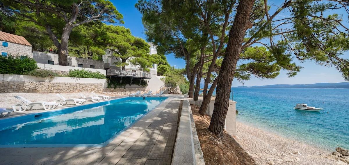 Villa en primera línea en Omiš con piscina climatizada junto al mar y vistas abiertas al Adriático. Ideal para familias y grupos pequeños, ofrece 4 dormitorios en suite, terrazas frente al mar y acceso directo al agua. Ubicación única sin carretera entre la villa y el mar.