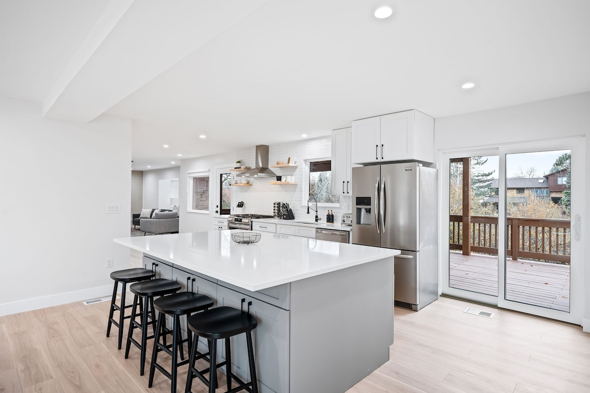 Perfecto para viajes en grupo, este espacioso y elegante alojamiento tiene todo lo que necesitas para una estancia relajante cerca de Denver, ¡a solo ~25 minutos del DIA! - Bañera de hidromasaje y jacuzzi para una relajación máxima - 6 cómodas camas: 1 king, 2 queen y dobles - TV 4K grande para noches de cine - Espacio de oficina con escritorio de pie y futón - Barra de cocina y acogedor estudio para el entretenimiento - Barrio tranquilo con senderos para caminar - Garaje con cargador de vehículos eléctricos de nivel 2 - Cerca del centro de recreación para mayor diversión ¡Comodidad y conveniencia todo en uno!
