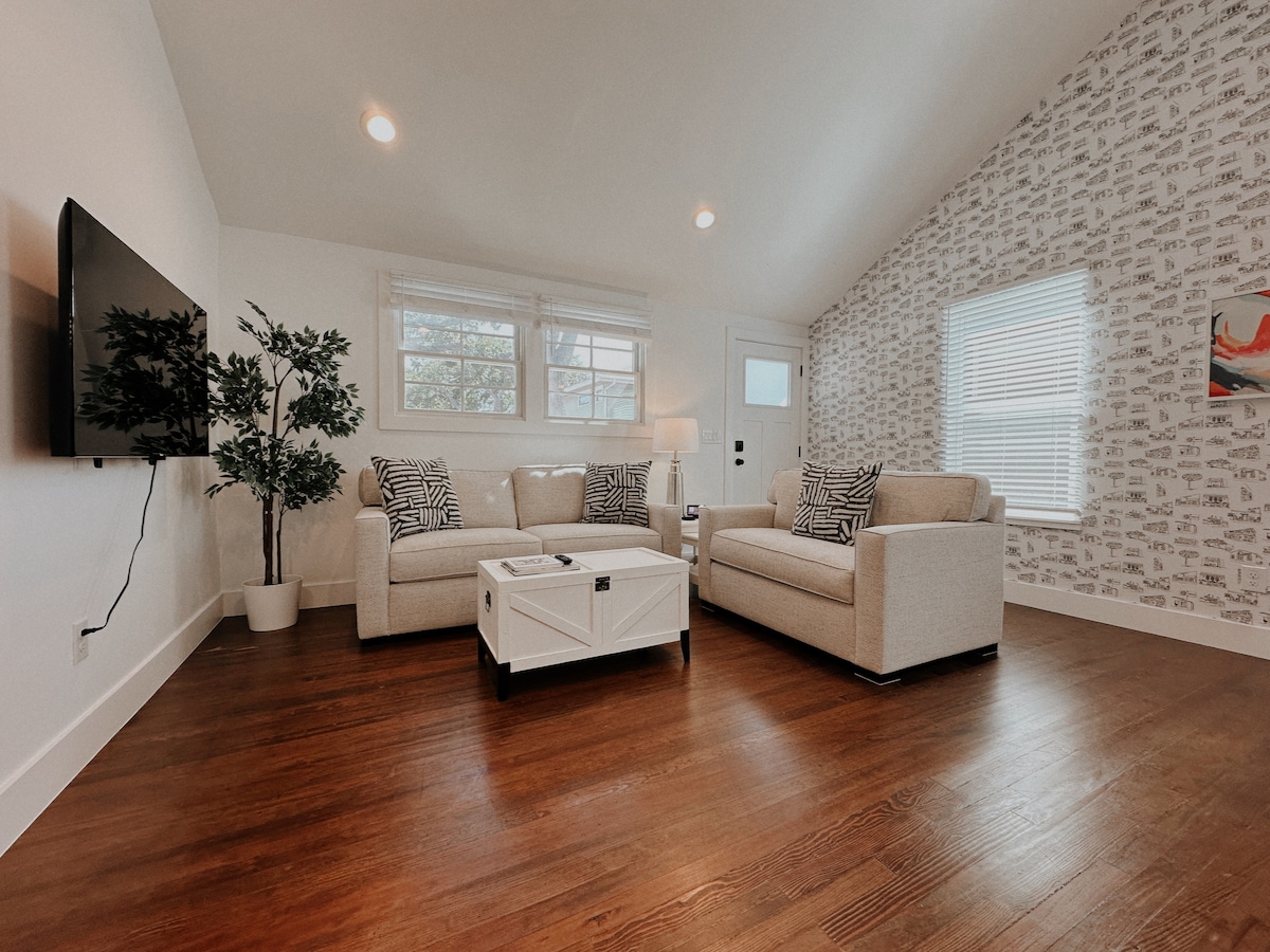 Esta pequeña casa fue diseñada con cariño por una artista durante la cuarentena, ¡y ahora puedes entrar en su mundo! Disfruta de los fotolibros, sumérgete en la bañera extraprofunda o mira por la ventana del loft. Este es un oasis tranquilo y rural situado en el barrio de Hyde Park, a cinco minutos a pie de Shipe Park y piscina, Quack's Bakery, Julio's Tex Max, Hyde Park Grill, Juiceland y Antonelli's Cheese Shop. Si te gustan los espacios altamente organizados y las escaleras de biblioteca, ¡has encontrado el lugar correcto!