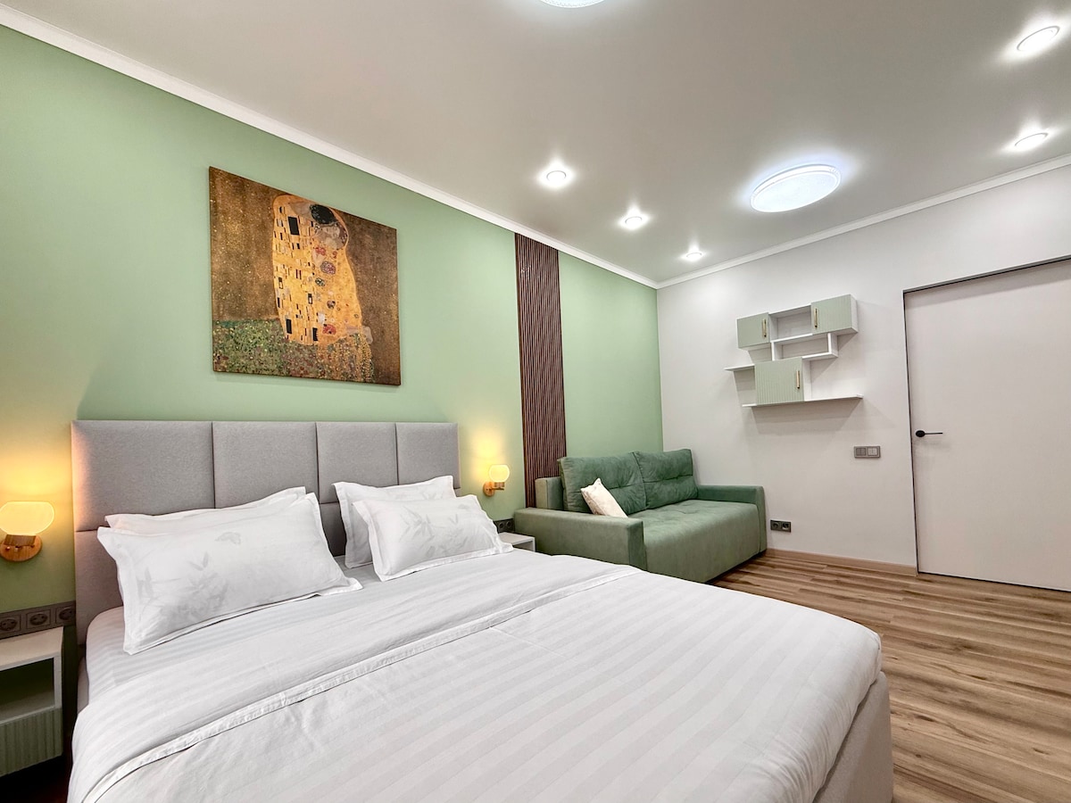 Siente la tranquilidad y el estilo en nuestros apartamentos. El apartamento está situado en una zona verde, donde podrá respirar aire puro de montaña y disfrutar de unas vistas pintorescas. Aquí puede descansar completamente del ajetreo de la ciudad. A poca distancia: Parque Central, Zoológico, Parque 28 Panfilovtsev, Arbat, Bazar Verde, Mezquita, Iglesia, así como muchos cafés y restaurantes.