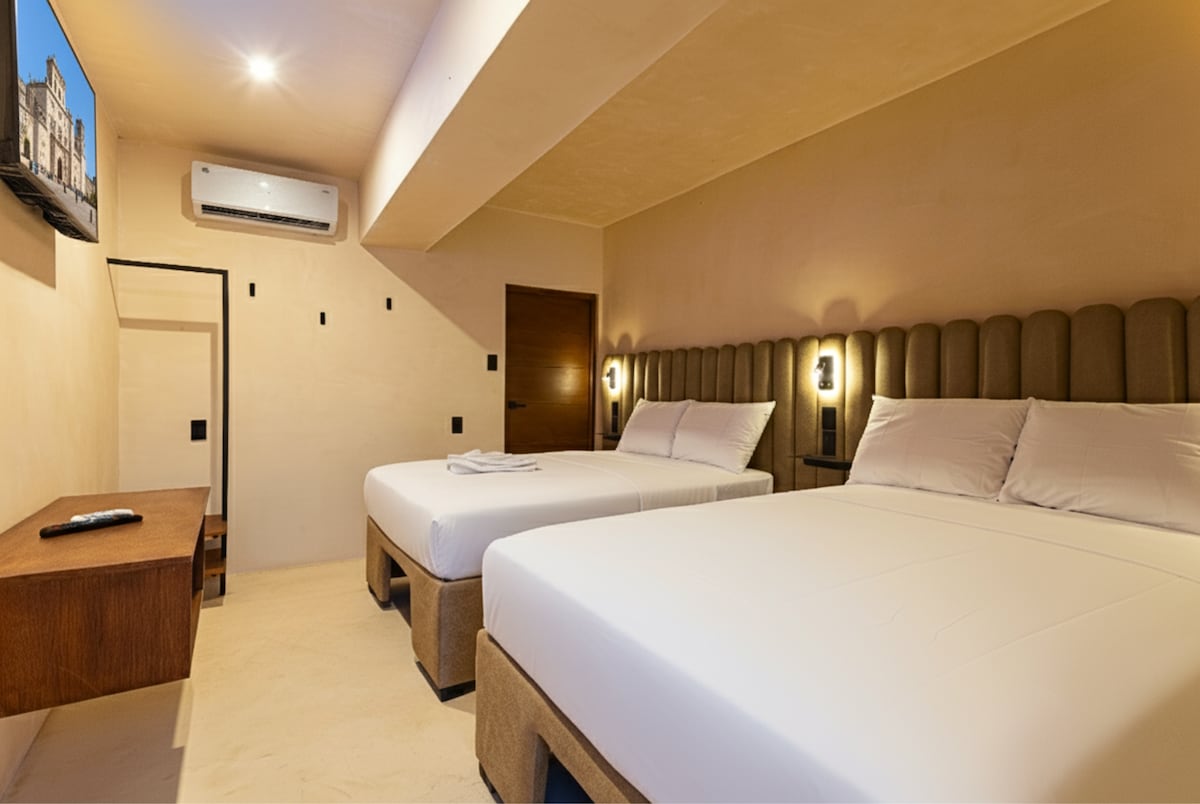 Oasis moderno en el corazón de Mérida ¡Bienvenido a su elegante refugio en el centro de Mérida! Nuestro hotel boutique ofrece habitaciones elegantes y modernas, totalmente equipadas con todo lo necesario para una estancia relajante. Toma el sol en nuestra impresionante piscina en la azotea mientras disfrutas de un refrescante baño o cóctel. Ubicado a solo unos pasos del centro histórico de Mérida, estarás rodeado de los mejores restaurantes, atracciones culturales y la vibrante vida nocturna que la ciudad tiene para ofrecer.
