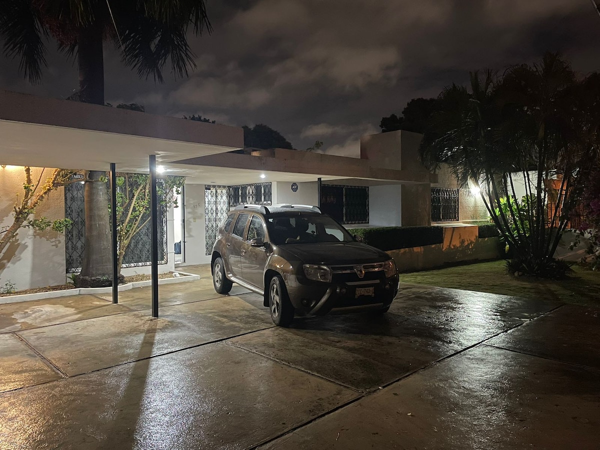 Ubicado en un lugar céntrico, te ofrecemos hospedarte en un oasis de calma y tranquilidad, seguro y cómodo . Ideal para turismo, negocios o salud, estamos a 6 km del aeropuerto, 4 km de la estación ADO, 1 km del Hospital Ohran y la Clínica Mérida, 2 km del Centro Internacional de Convenciones y 5 km del Centro de Convenciones Siglo XXI. En un auténtico barrio yucateco, frente a Col. Centro y 33 km de Puerto Progreso, con fácil acceso al centro de la ciudad Sisal, Celestún, Uxmal y cenotes.
