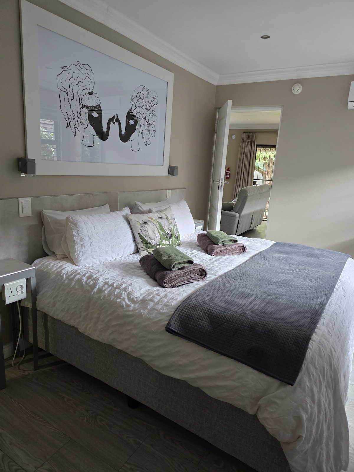 No.2 es una moderna habitación doble con baño privado situada dentro de la finca Centurion Golf Estate y muy cerca de Irene Dairy Farm, el hospital Unitas y los aeropuertos OR Thambo y Lanseria, que se encuentran a 40 km. La finca ofrece seguridad controlada las 24 horas y el club incluye un campo de golf de diseño único, instalaciones para conferencias, canchas de tenis y squash, un restaurante y un bar. Los amplios espacios abiertos hacen de la finca un destino ideal para viajeros de negocios y de placer.