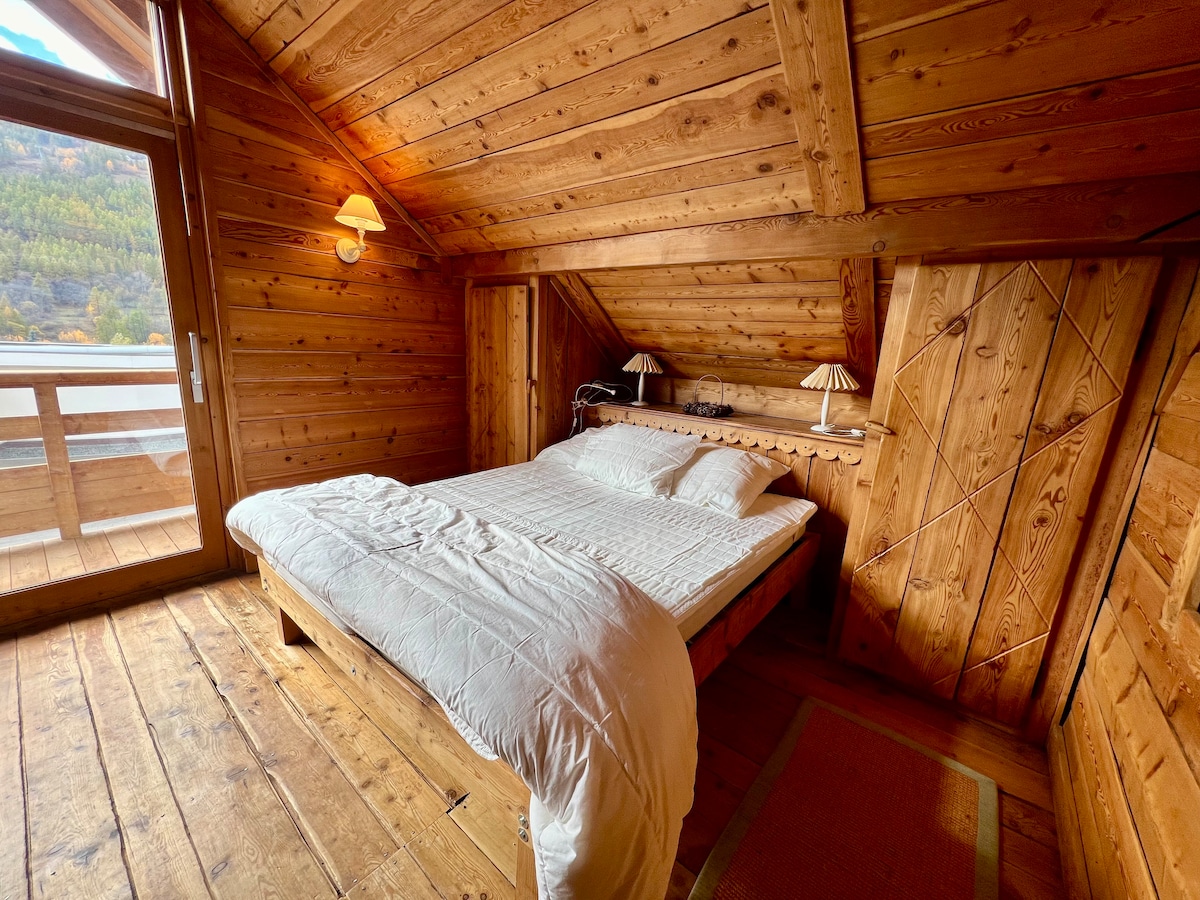 Ofrecemos el 1er piso de nuestro chalet familiar, renovado al 100% en 2024, después de 2 años de grandes trabajos de aislamiento y embellecimiento para la máxima comodidad. Un entorno excepcional, a 1900 m de altitud, a 700 m de Brunissard, al final de un camino forestal transitable. En invierno, el acceso es más a menudo imposible en coche, pero el camino es fácil a pie, incluso para niños: proporcionar más bien mochilas. (opción de moto de nieve para equipaje) ¡5 G disponible!