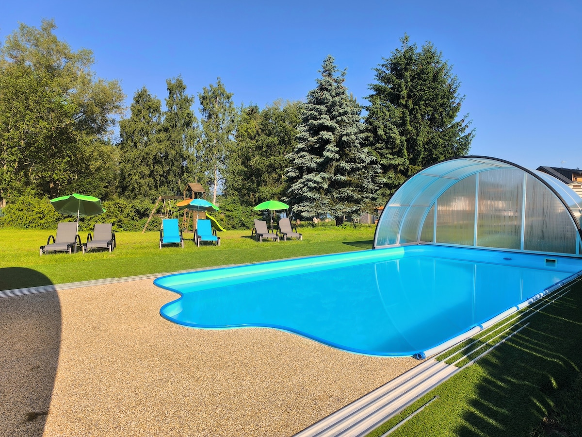 Tranquila villa grande con vistas, piscina y parque infantil.